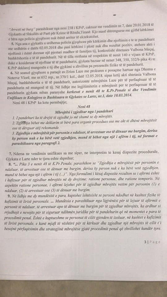 Me 20.1.2018, Gjykata per Krime te Renda vendos masen shternguese arrest me burg.