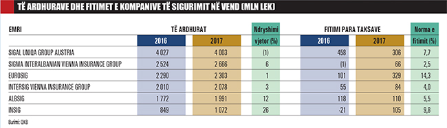 Sigma dhe Intersig, të dyja pjesë e Vienna Insurance Group raportuan fitime minimale, prej përkatësisht 66 dhe 84 milionë lekë.