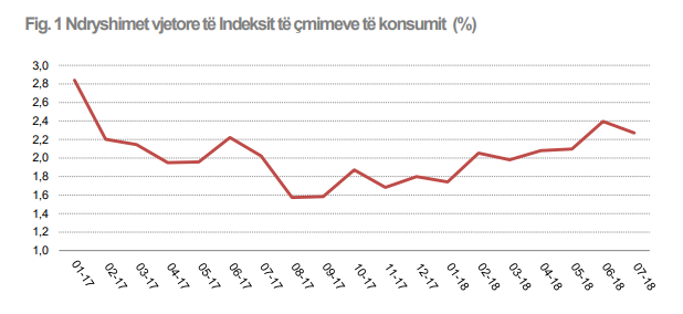 Rritja vjetore e çmimeve në muajin Korrik është ndikuar kryesisht nga grupi “Ushqime dhe pije joalkoolike” me +1,18 pikë përqindje. Çmimet e grupit “Qira, ujë, lëndë djegëse dhe energji” kanë kontribuar me +0,59 pikë përqindje. Çmimet e grupit “Transporti” kanë kontribuar me +0,20 pikë përqindje.