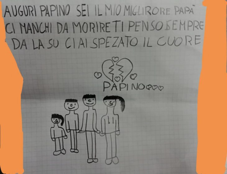 Marina është e rrethuar nga kujtimet, nga fotografitë ku janë të gjithë bashkë, të lumtur e të dashuruar, por jo vetëm. Ajo është e rrethuar nga vizatimet e shumta të fëmijëve të vegjël, që shpresojnë se babai i tyre do të mund t’i shohë.