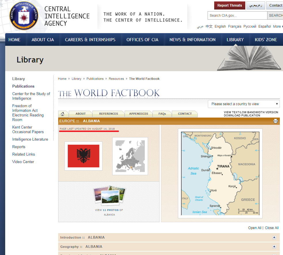 Agjencia amerikane e Inteligjencës Amerikanë, CIA, ka publikuar një raport për Ballkanin, ku pjesë e analizës është edhe Shqipëria.