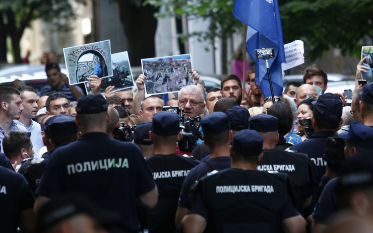 Protesta kryesohet nga krimineli i luftës Vojisllav Sheshel ndërsa në radhën e radikalëve janë edhe dy deputetë nga Partia Radikale Serbe.