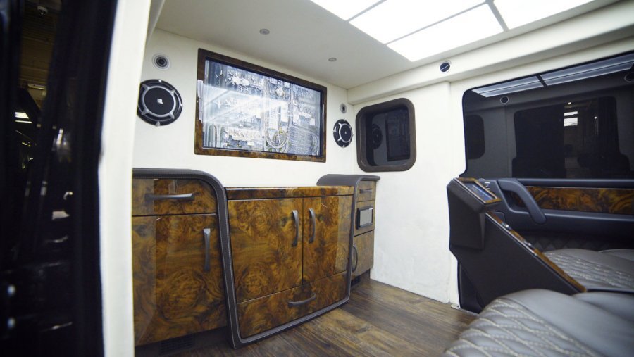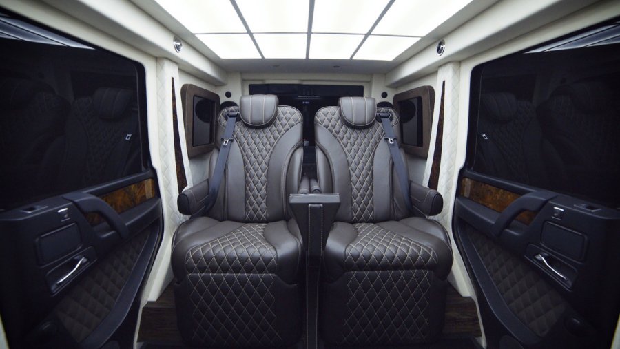 Gjithashtu, Inkas G63 AMG është e zgjatur në 6.2 metra, e gjerë 2 metra dhe e lartë 1.9 metra dhe në pjesën e pasme në interier ofron një rehati të mrekullueshme për dy persona, duke përfshirë karriget luksoze prej lëkure Alcantara, televizor me monitor 4K, mini bar, etj, raporton Koha.net.