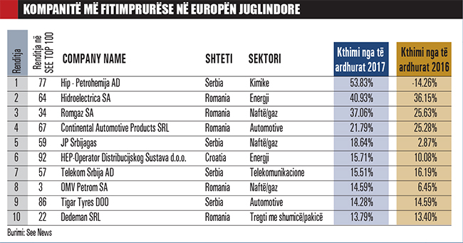 Subjektet me pronësi shtetërore zënë tre vendet e para në listën e 10 sipërmarrjeve më fitimprurëse, që dominohen nga Rumania dhe Serbia, të cilat kanë përkatësisht nga katër dhe pesë biznese në listë, përkatësisht, thuhet në raport.