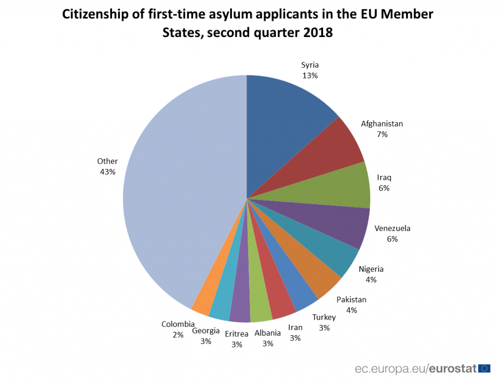Numri më i lartë i azilkërkuesve vjen nga Siria, Afganistani dhe Iraku ndërkohë që këtë tremujor numër të lartë aplikuesish për herë të parë ka edhe Venezula, vend i cili po përjeton një krizë të fortë ekonomike.