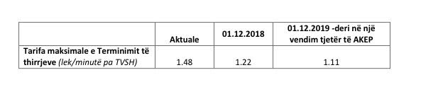 Nga data 1 dhjetor e këtij viti kanë hyrë në fuqi tarifat e reja të terminimit të thirrjeve në rrjetet celulare të Vodafone, Telekom dhe Albtelekom të cilat janë ulur me 17.5% me tarifat ekzistuese dhe pritet të reflektohen në tarifat që paguajnë abonentët.