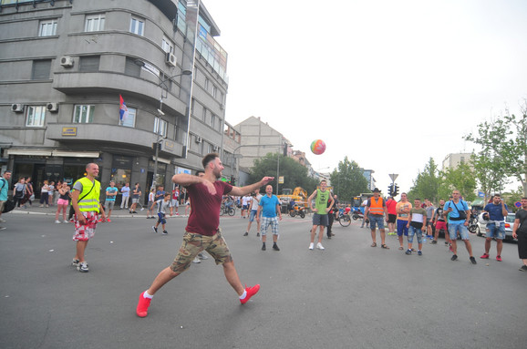 Por bllokimi i rrugëve ka krijuar edhe një situatë, ku të gjitha qendrat e qyteteve, për shkak të bllokimit të arterieve kryesore ishin bosh. I tillë ishte Novi Sadi ku protestuesit nuk çanin kokën për policët, dhe kohën e bllokimit të rrugëve e kaluan duke luajtur futboll.