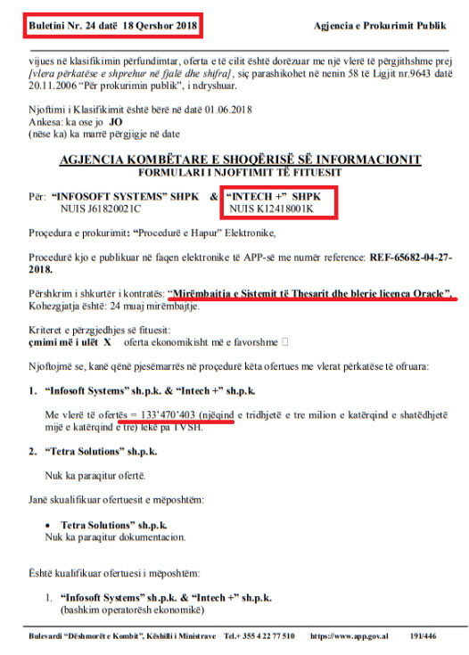Rasti më i fundit është ai i shpalljes fituese të kompanisë “Intech+”, e zotëruar de facto prej Beqajt. Në një tender pa asnjë konkurent, shoqëria e ish ministrit që rrënoi shëndetësinë, u shpall fituese për 1 mld e 362 mln lekë ose 1,1 mln euro, duke patur ofertë gati të njëjtë me fondin limit, pa i kursyer buxhetit gati asnjë qindarkë.