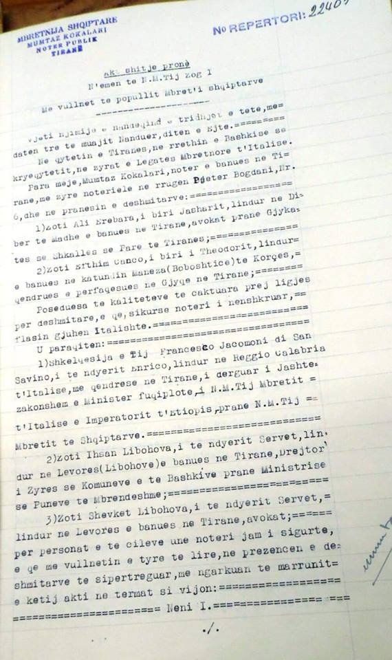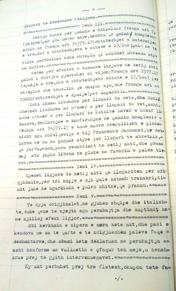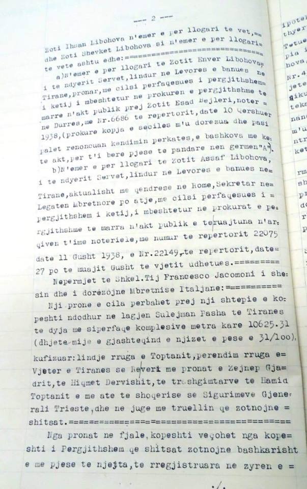 “Unë sot këtu po publikoj kontratën e shitblerjes nënshkruar në vitin 1938 nga familja Libohova, që i është shitur përfaqësuesit të shtetit italian.