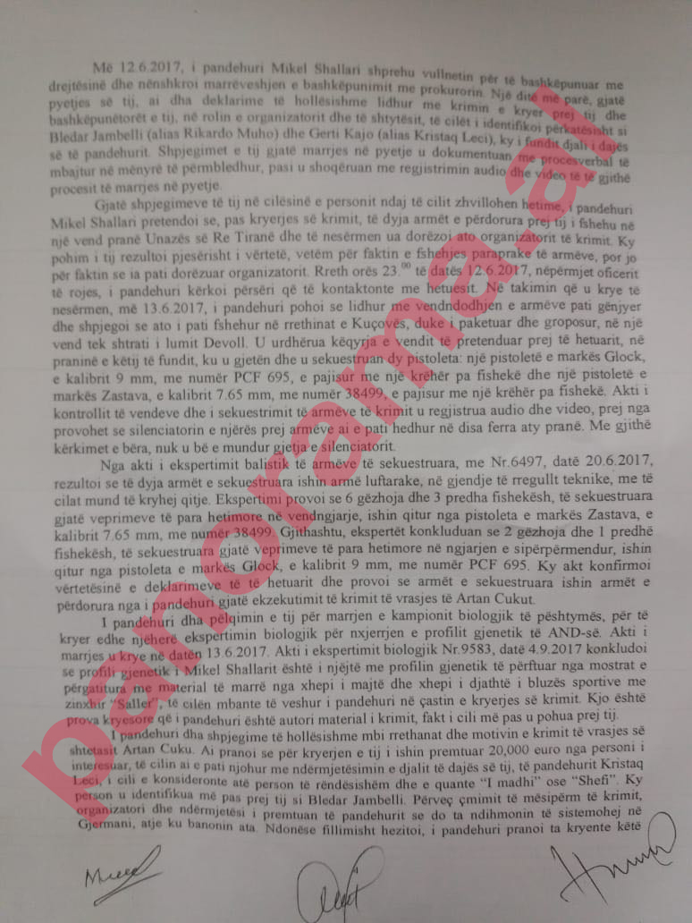 Një pjesë nga dëshmia, ku tregon se Shallari ka pranuar vrasjen e Cukut