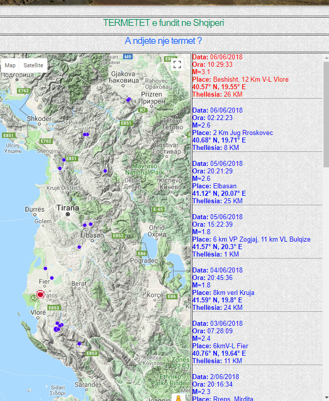 Dy lëkundje tërmeti janë regjistruar sot në Shqipëri, njëri pak pas mesnate në Roskovec dhe tjetri gjatë paradites në Vlore. IGJEUM bën me dije se në Roskovec tërmeti ishte me magnitude 2.6 ballë, kurse në Vlorë, me epiqendër Beshisht, me një magnitudë 3.1.