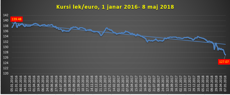 Prej fillimit të vitit 2018, deri sot euro ka humbur më shumë se 5.8 pikë ndaj lekut vendas. Kjo rënie kaq e fortë e euros nuk pritej që tani. Ekspertët e tregut kishin parashikuar që euro do të prekte këto nivele me gjatë sezonit turistik, ku flukset e emigrantëve dhe turistëve rrisin më tej ofertën në valutë në vend. Sipas ekspertëve të tregut, tendenca rënëse e euros do të vijojë.