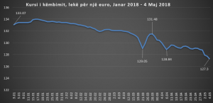 Prej gjashtë ditësh euro ka hyrë në një trend rënës, duke u zhvlerësuar përkundrejt lekut me gati 2 pikë. Prej fillimit të këtij viti (shiko grafikun) euro ka humbur 5.6 pikë, me një ritëm rënie të përshpejtuar në dy muajt e fundit.