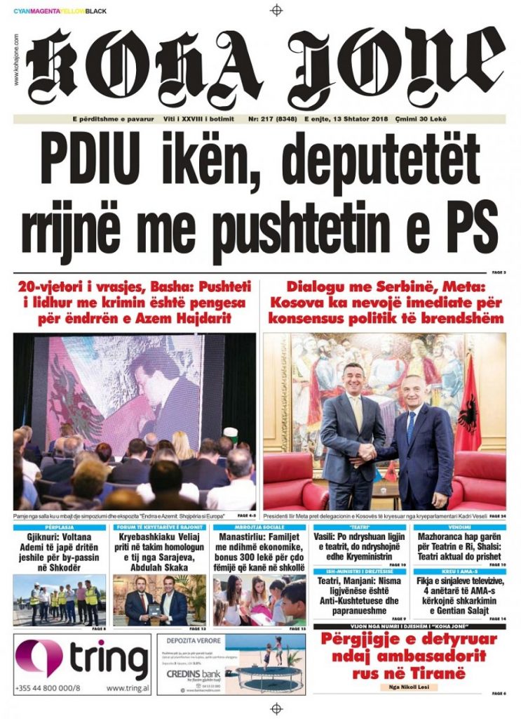 Faqet e para të shtypit të ditës, 13 shtator 2018 KryesoretRisi By Pa frike On Sht 13, 2018 65 faqet e parashtypi i dites 65 Ndaj FacebookTwitterLinkedinGoogle+