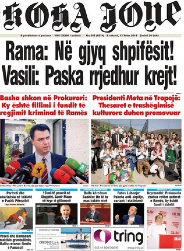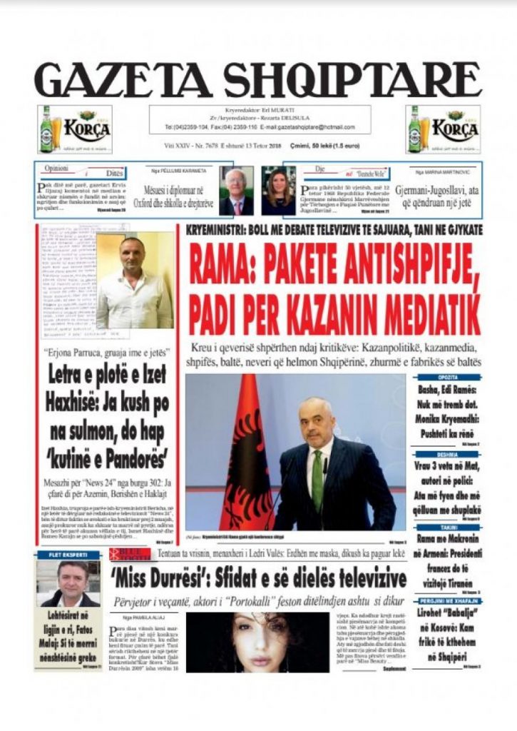 Faqet e para të shtypit të ditës, 13 tetor 2018 KryesoretRisi By Pa frike On Tet 13, 2018 116 faqet e parashtypi i dites 116 Ndaj FacebookTwitterLinkedinGoogle+