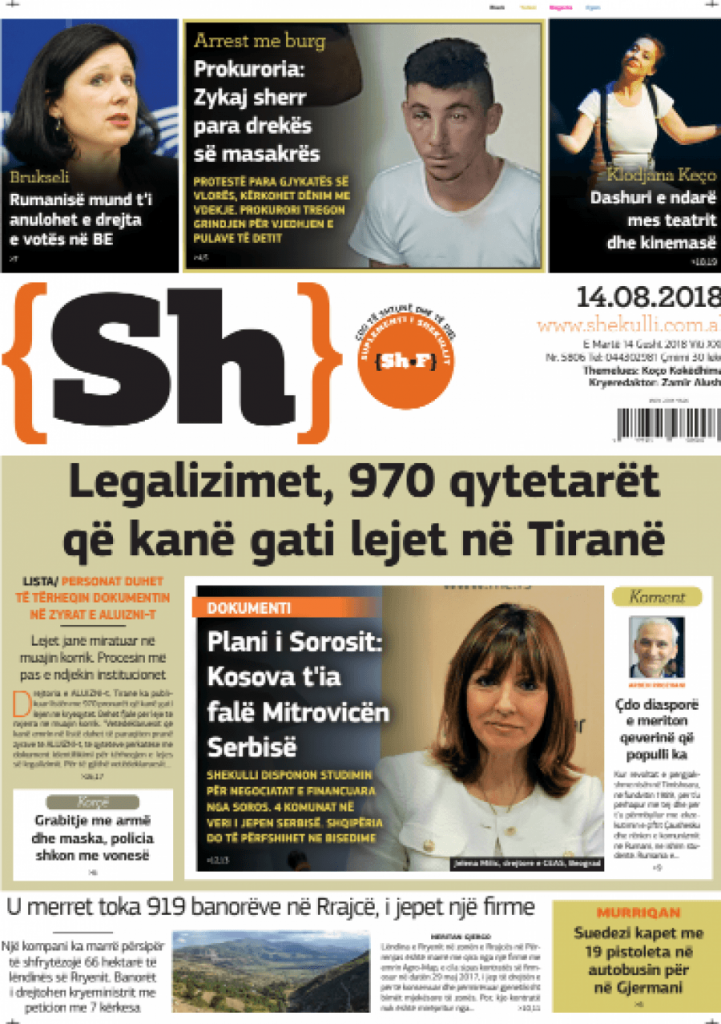 Faqet e para të shtypit të ditës, 14 gusht 2018 KryesoretRisi By Pa frike On Gus 14, 2018 90 shtypi i dites 90 Ndaj FacebookTwitterLinkedinGoogle+