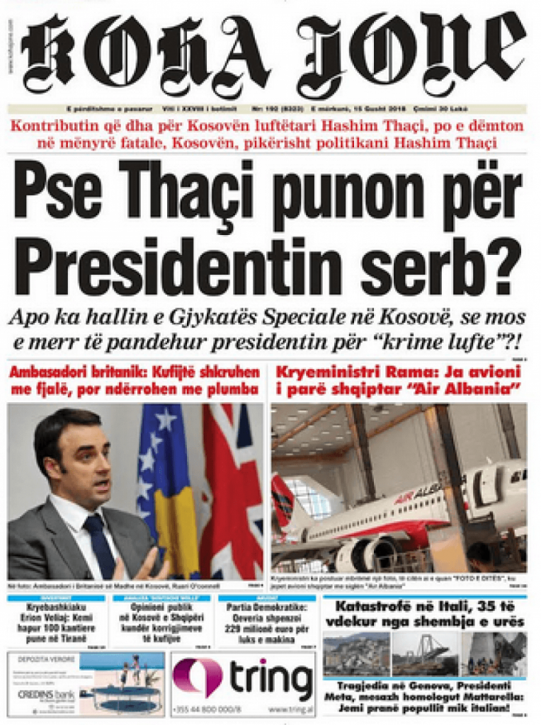 Faqet e para të shtypit të ditës, 15 gusht 2018 KryesoretRisi By Pa frike Last updated Gus 15, 2018 129 faqet e parashtypi i dites 129 Ndaj FacebookTwitterLinkedinGoogle+