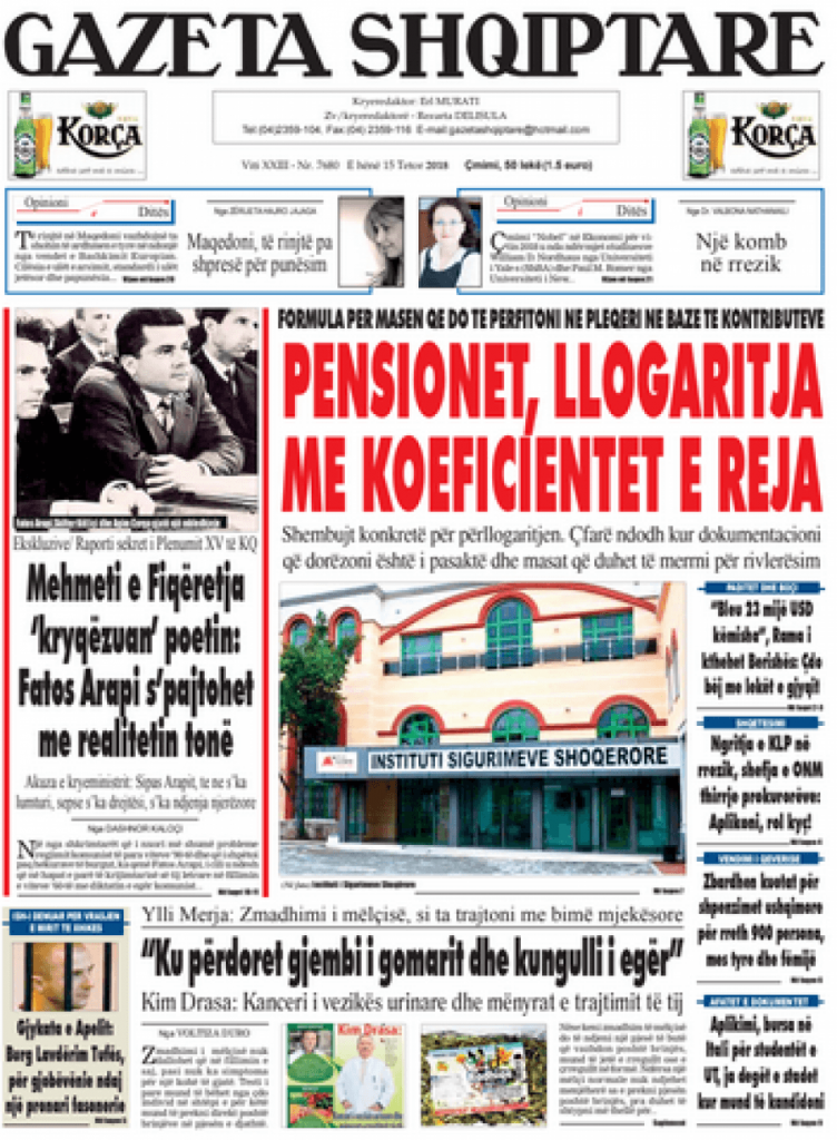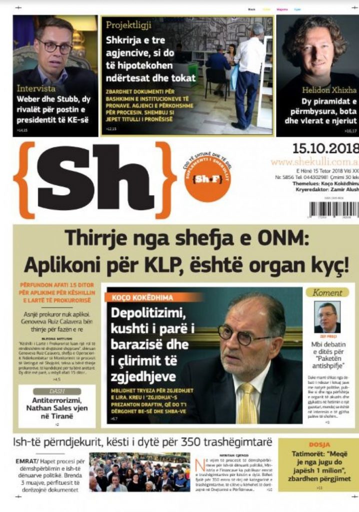 Faqet e para të shtypit të ditës, 15 tetor 2018 KryesoretRisi By Pa frike Last updated Tet 15, 2018 131 faqet e parashtypi i dites 131 Ndaj FacebookTwitterLinkedinGoogle+