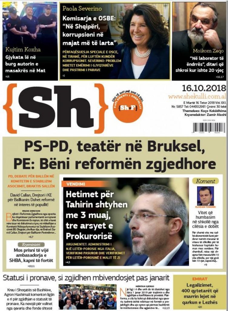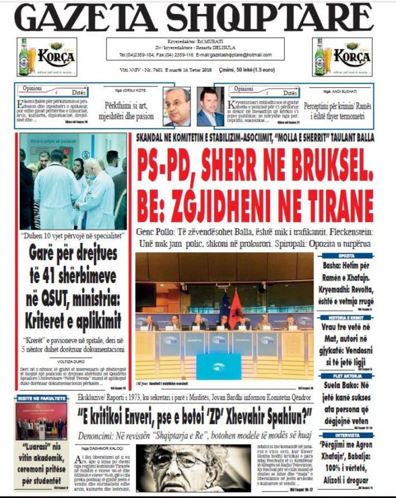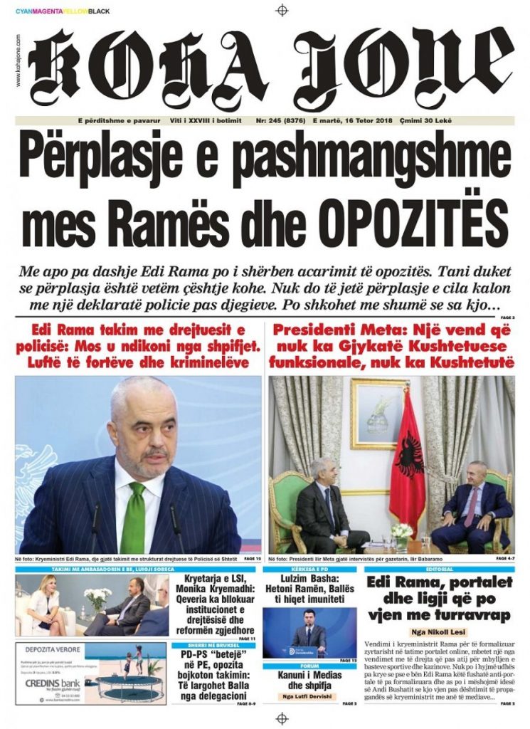 Faqet e para të shtypit të ditës, 16 tetor 2018 KryesoretRisi By Pa frike On Tet 16, 2018 122 faqet e parashtypi i dites 122 Ndaj FacebookTwitterLinkedinGoogle+