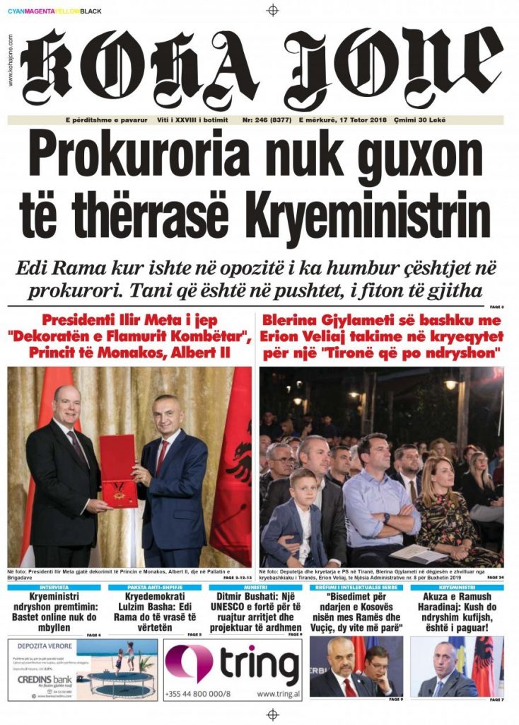 Faqet e para të shtypit të ditës, 17 tetor 2018 KryesoretRisi By Pa frike Last updated Tet 17, 2018 82 faqet e parashtypi i dites 82 Ndaj FacebookTwitterLinkedinGoogle+