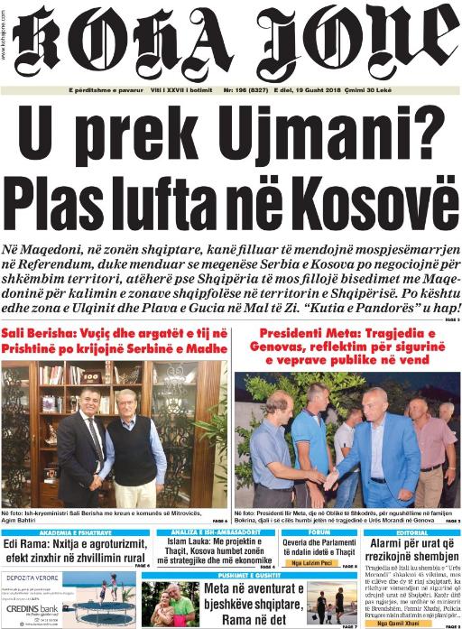 Faqet e para të shtypit të ditës, 19 gusht 2018 RisiKryesoret By Pa frike Last updated Gus 19, 2018 79 faqet e parashtypi i dites 79 Ndaj FacebookTwitterLinkedinGoogle+
