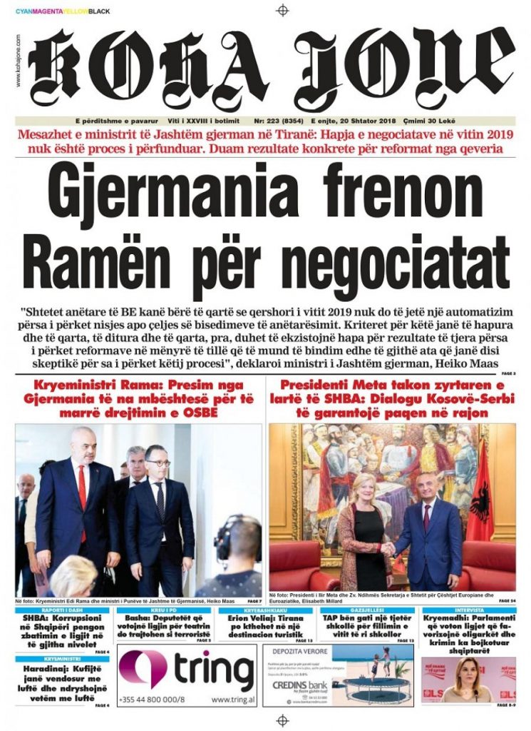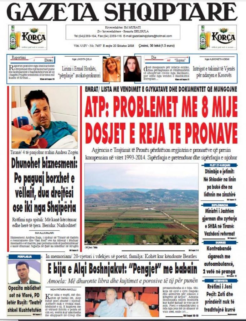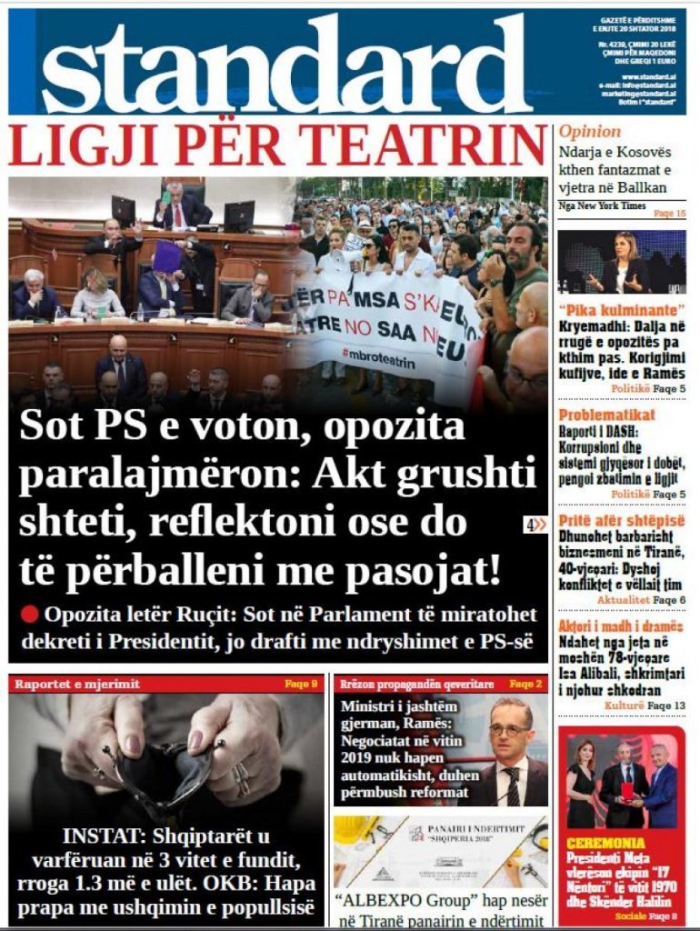 Faqet e para të shtypit të ditës, 20 shtator 2018 KryesoretRisi By Pa frike On Sht 20, 2018 94 faqet e parashtypi i dites 94 Ndaj FacebookTwitterLinkedinGoogle+