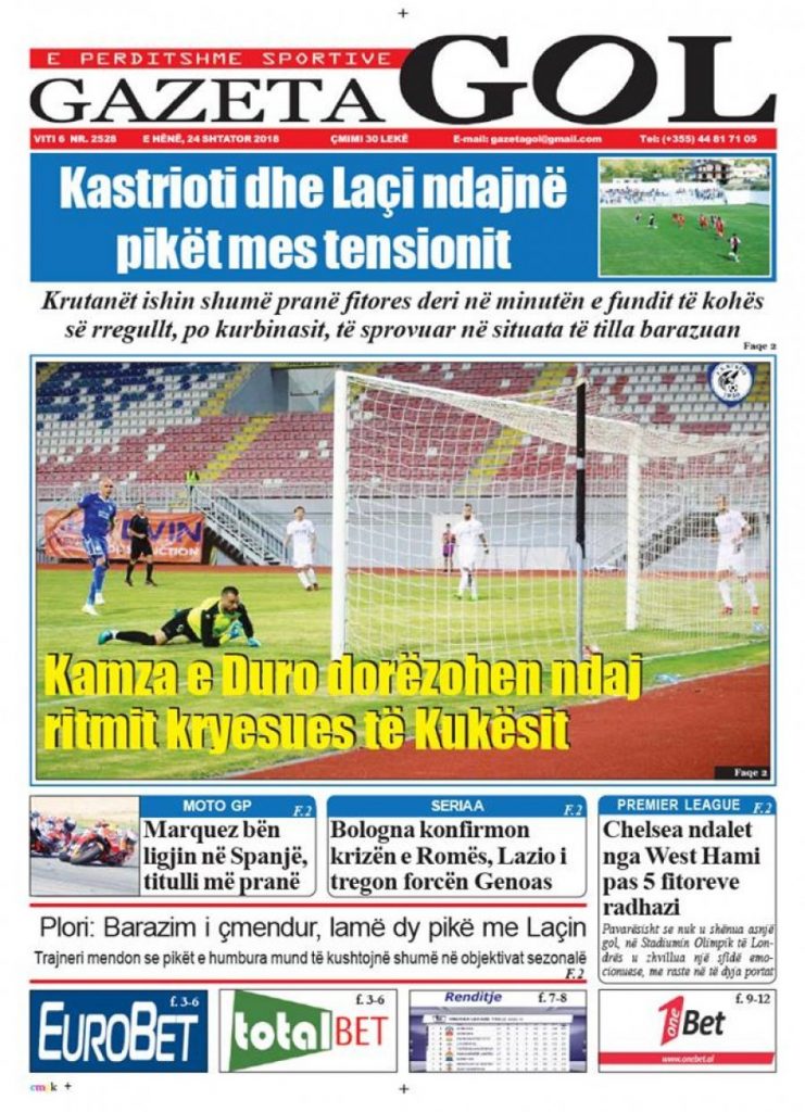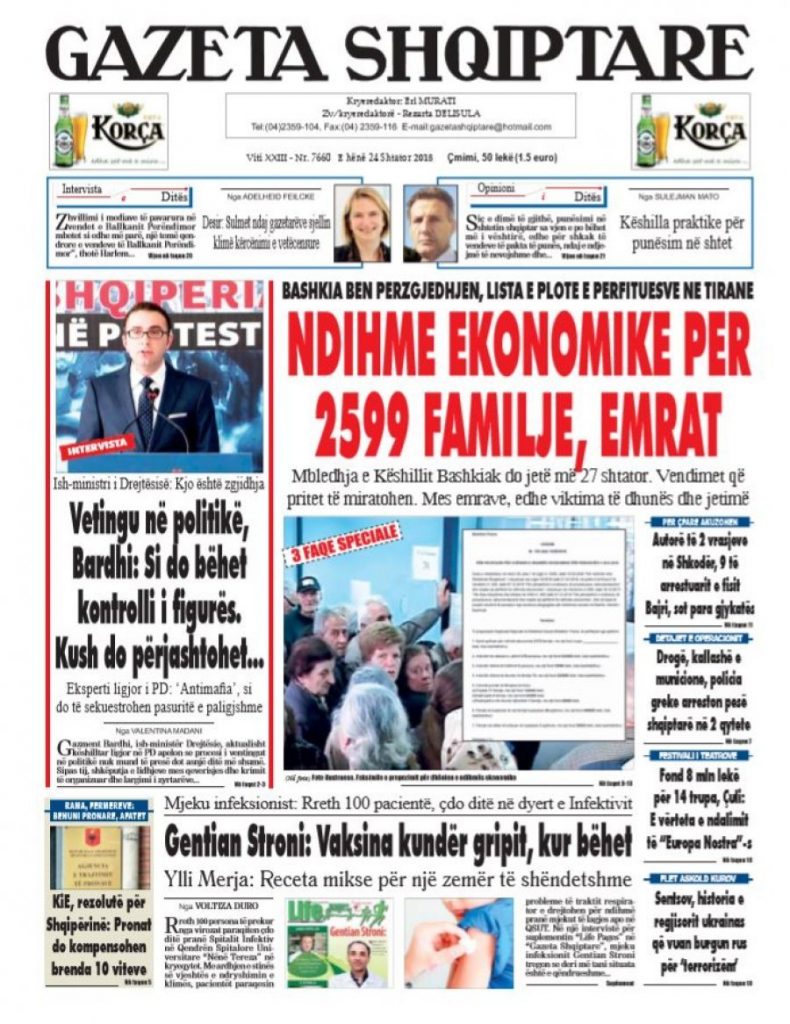 Faqet e para të shtypit të ditës, 24 shtator 2018 KryesoretRisi By Pa frike Last updated Sht 24, 2018 122 faqet e parashtypi i dites 122 Ndaj FacebookTwitterLinkedinGoogle+