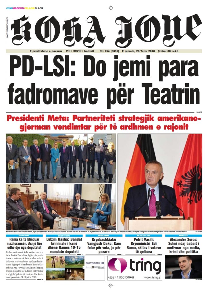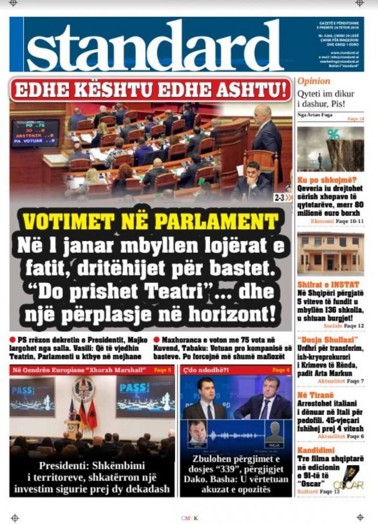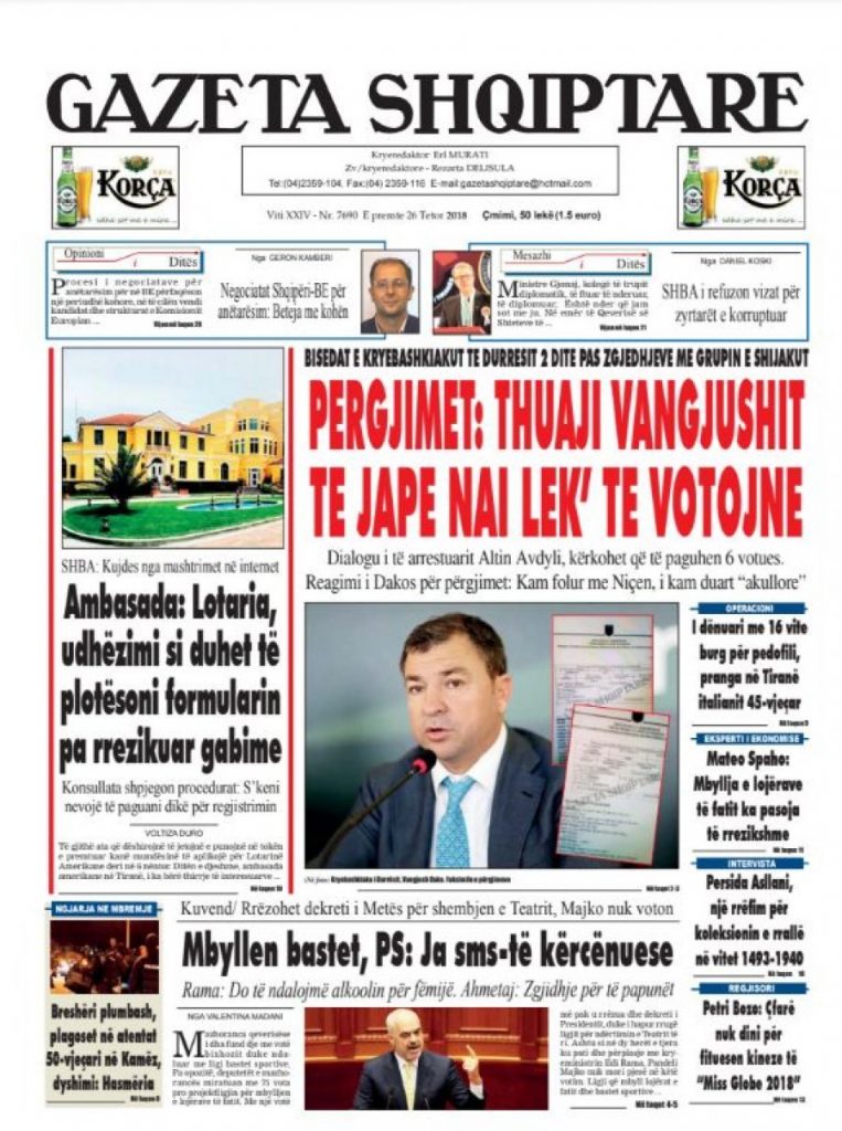Faqet e para të shtypit të ditës, 26 tetor 2018 KryesoretRisi By Pa frike Last updated Tet 26, 2018 200 Këto janë faqet e para të shtypit të ditës, datë 26 tetor 2018: faqet e parashtypi i dites 200 Ndaj FacebookTwitterLinkedinGoogle+
