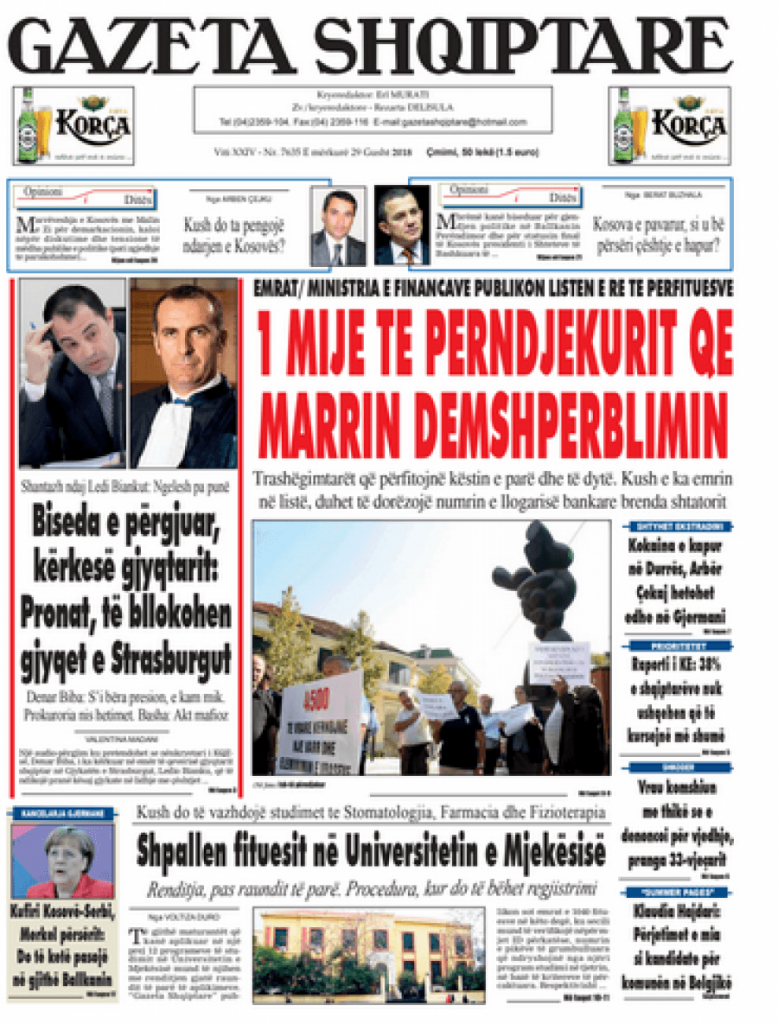 Faqet e para të shtypit të ditës, 29 gusht 2018 KryesoretRisi By Pa frike On Gus 29, 2018 105 faqet e parashtypi i dites 105 Ndaj FacebookTwitterLinkedinGoogle+