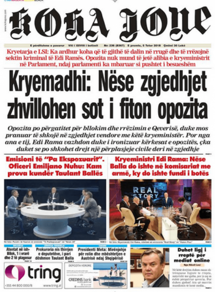 Faqet e para të shtypit të ditës, 5 tetor 2018 KryesoretRisi By Pa frike On Tet 5, 2018 101 faqet e parashtypi i dites 101 Ndaj FacebookTwitterLinkedinGoogle+