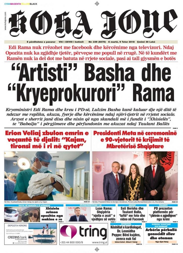 Faqet e para të shtypit të ditës, 9 tetor 2018 KryesoretRisi By Pa frike On Tet 9, 2018 161 faqet e parashtypi i dites 161 Ndaj FacebookTwitterLinkedinGoogle+