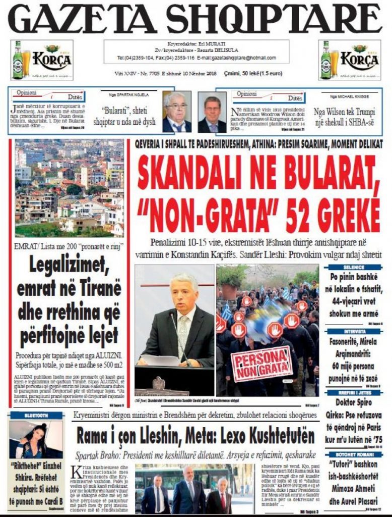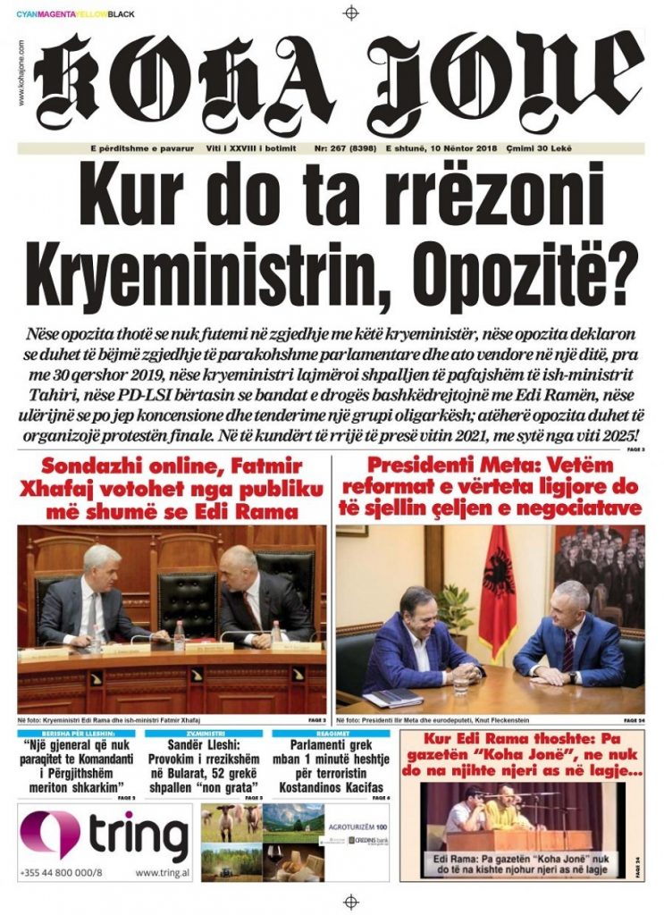 Faqet e para të shtypit të ditës, datë 10 nëntor 2018 KryesoretRisi By Pa frike On Nën 10, 2018 162 Këto janë faqet e para të shtypit të ditës, datë 10 nëntor 2018: faqet e parashtypi i dites 162 Ndaj FacebookTwitterLinkedinGoogle+