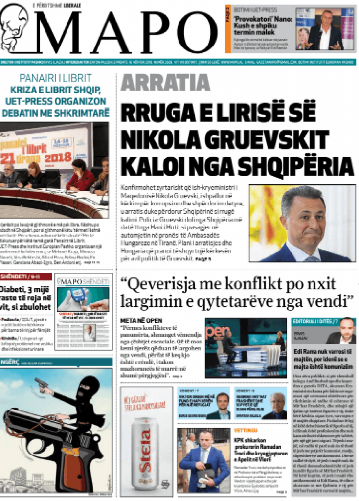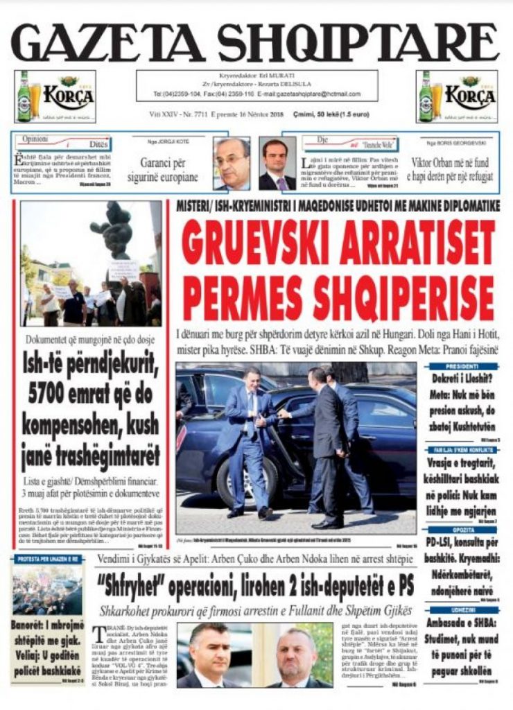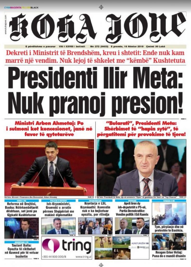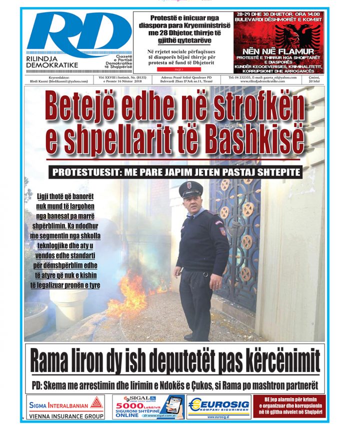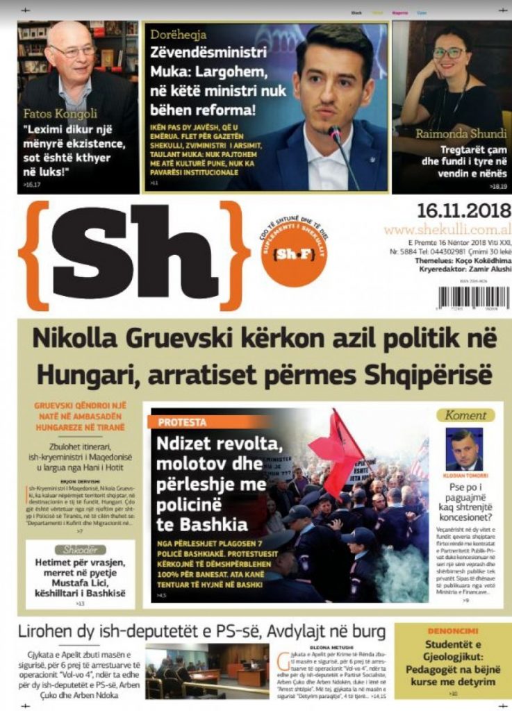 Faqet e para të shtypit të ditës, datë 16 nëntor 2018 KryesoretRisi By Pa frike Last updated Nën 16, 2018 162 Këto janë faqet e para të shtypit të ditës, datë 16 nëntor 2018: faqet e parashtypi i dites 162 Ndaj FacebookTwitterLinkedinGoogle+
