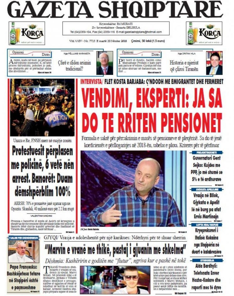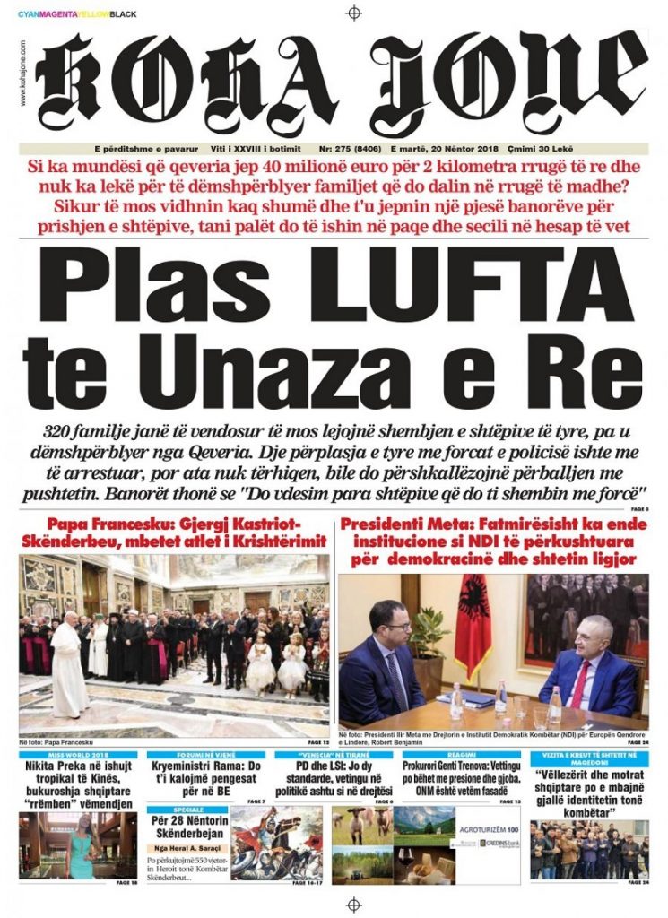 Faqet e para të shtypit të ditës, datë 20 nëntor 2018 KryesoretRisi By Pa frike On Nën 20, 2018 170 Këto janë faqet e para të shtypit të ditës, datë 20 nëntor 2018: faqet e parashtypi i dites 170 Ndaj FacebookTwitterLinkedinGoogle+