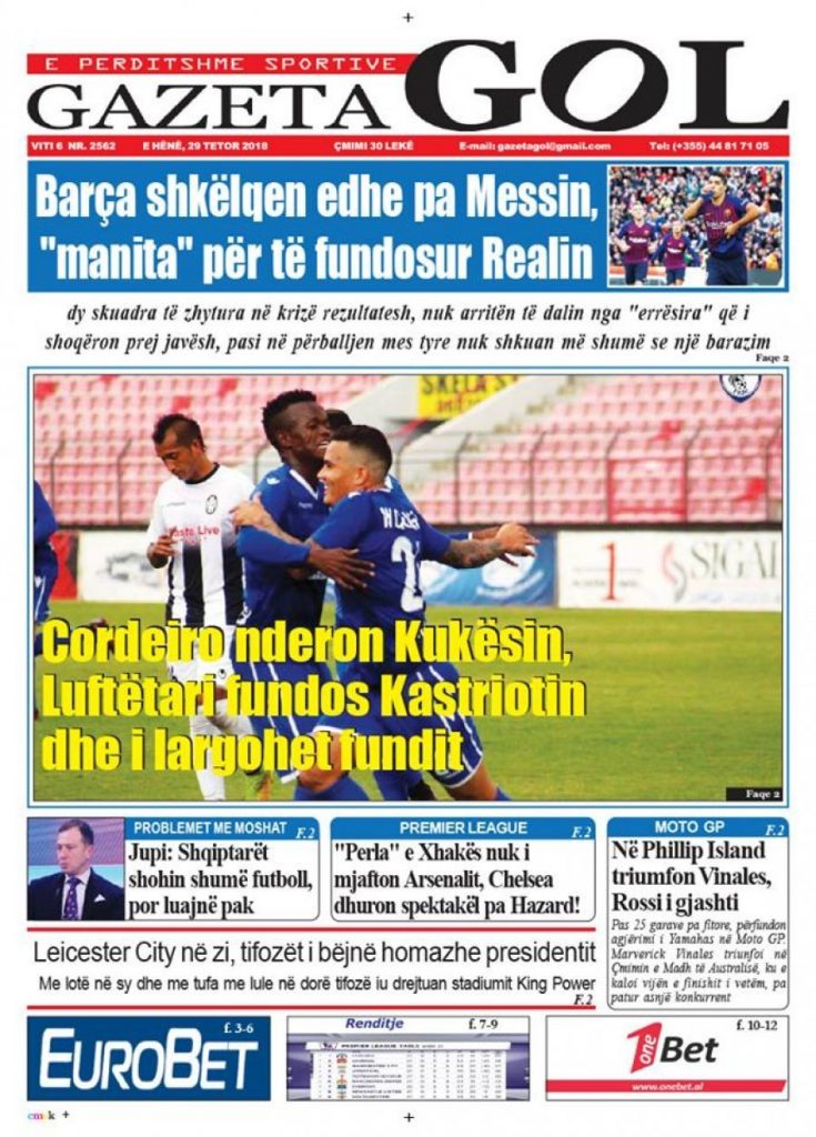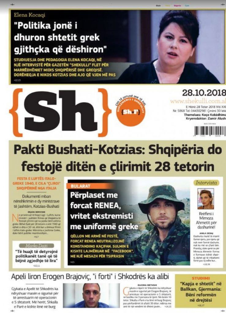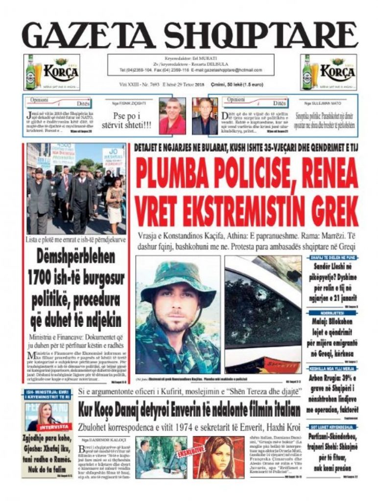 Faqet e para të shtypit të ditës, datë 29 tetor 2018 KryesoretRisi By Pa frike Last updated Tet 29, 2018 168 Këto janë faqet e para të shtypit të ditës, datë 29 tetor 2018: faqet e parashtypi i dites 168 Ndaj FacebookTwitterLinkedinGoogle+