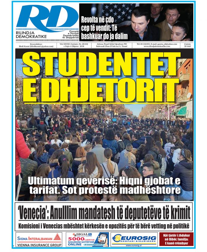 Faqet e para të shtypit të ditës, datë 6 dhjetor 2018 KryesoretRisi By Pa frike On Dhj 6, 2018 109 Këto janë faqet e para të shtypit të ditës, datë 6 dhjetor 2018: faqet e parashtypi i dites 109 Ndaj FacebookTwitterLinkedinGoogle+