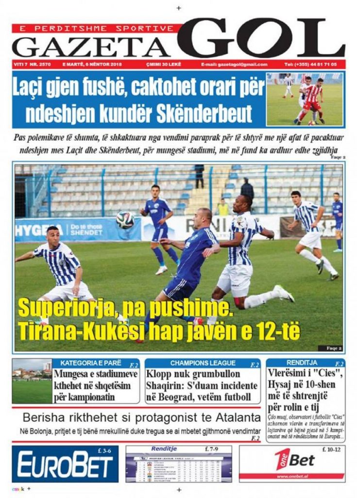 Faqet e para të shtypit të ditës, datë 6 nëntor 2018 KryesoretRisi By Pa frike On Nën 6, 2018 203 Këto janë faqet e para të shtypit të ditës, datë 6 nëntor 2018: faqet e parashtypi i dites 203 Ndaj FacebookTwitterLinkedinGoogle+