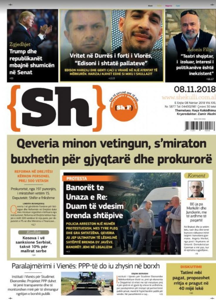 Faqet e para të shtypit të ditës, datë 8 nëntor 2018 KryesoretRisi By Pa frike Last updated Nën 8, 2018 242 Këto janë faqet e para të shtypit të ditës, datë 8 nëntor 2018: faqet e parashtypi i dites 242 Ndaj FacebookTwitterLinkedinGoogle+
