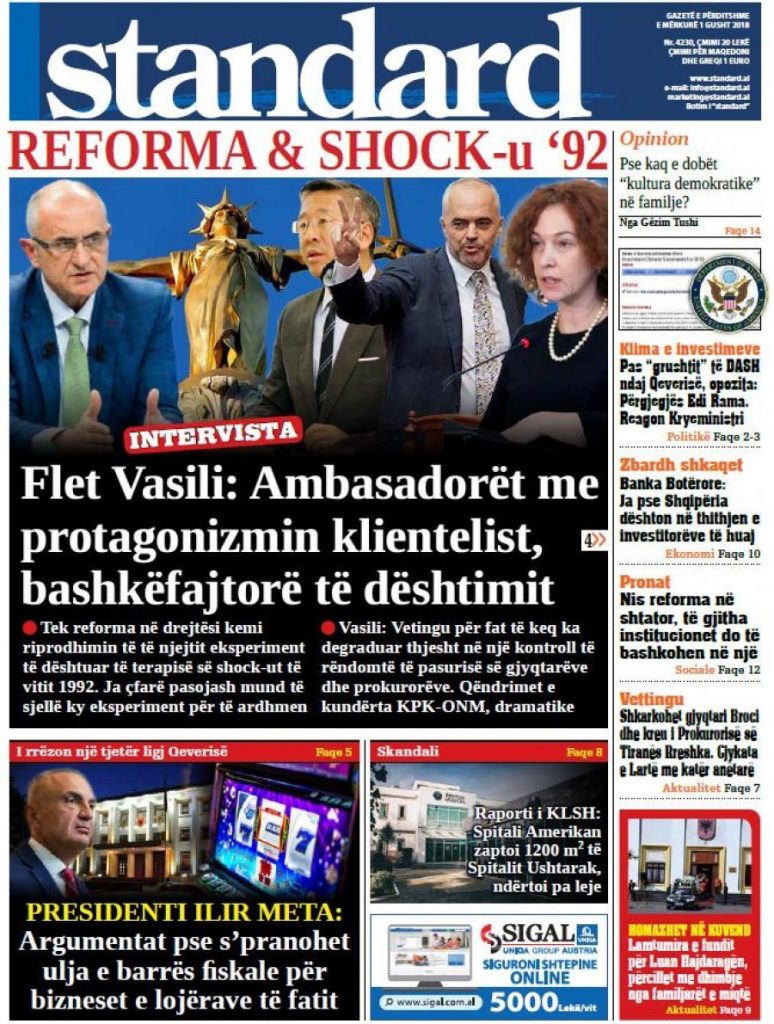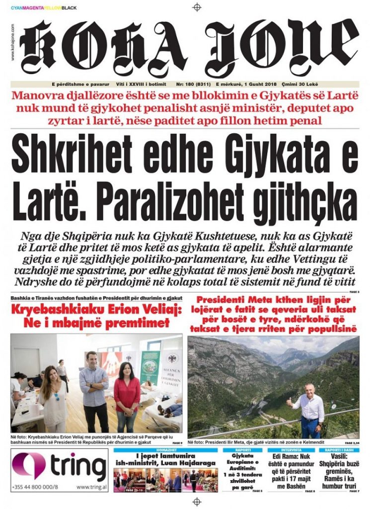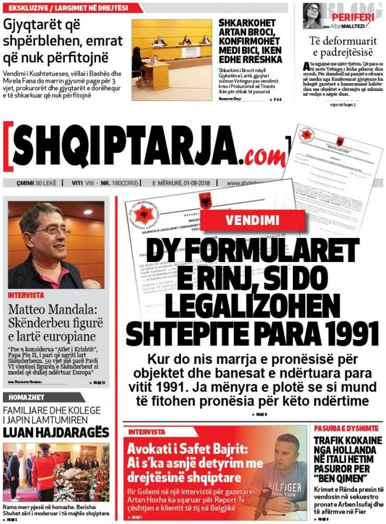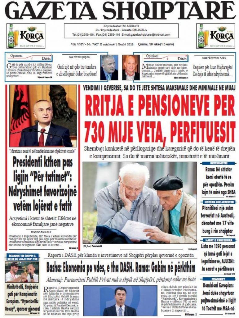 FOTO/ Faqet e para të shtypit të ditës, 1 gusht 2018… KryesoretRisi By Pa frike Last updated Gus 1, 2018 112 faqet e parashtypi i dites 112 Ndaj FacebookTwitterLinkedinGoogle+