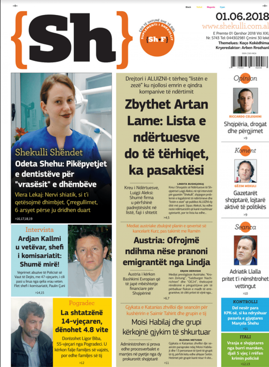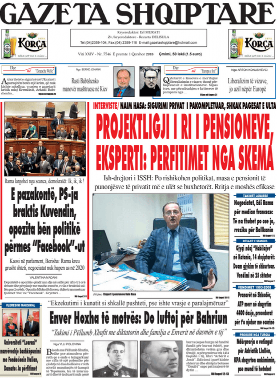 FOTO/ Faqet e para të shtypit të ditës, 1 Qershor 2018… KryesoretRisi By Pa frike Last updated Qer 1, 2018 118 Këto janë titujt kryesorë të gazetave të datës 1 Qershor 2018. faqet e paragazetatshtypi i dites 118 Ndaj FacebookTwitterLinkedinGoogle+