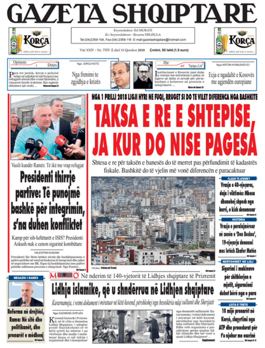 FOTO/ Faqet e para të shtypit të ditës, 10 Qershor 2018… KryesoretRisi By Pa frike Last updated Qer 10, 2018 114 Këto janë titujt kryesorë të gazetave të datës 10 Qershor 2018. faqet e para gazetat shtypi i ditesgazetatshtypi i dites 114 Ndaj FacebookTwitterLinkedinGoogle+