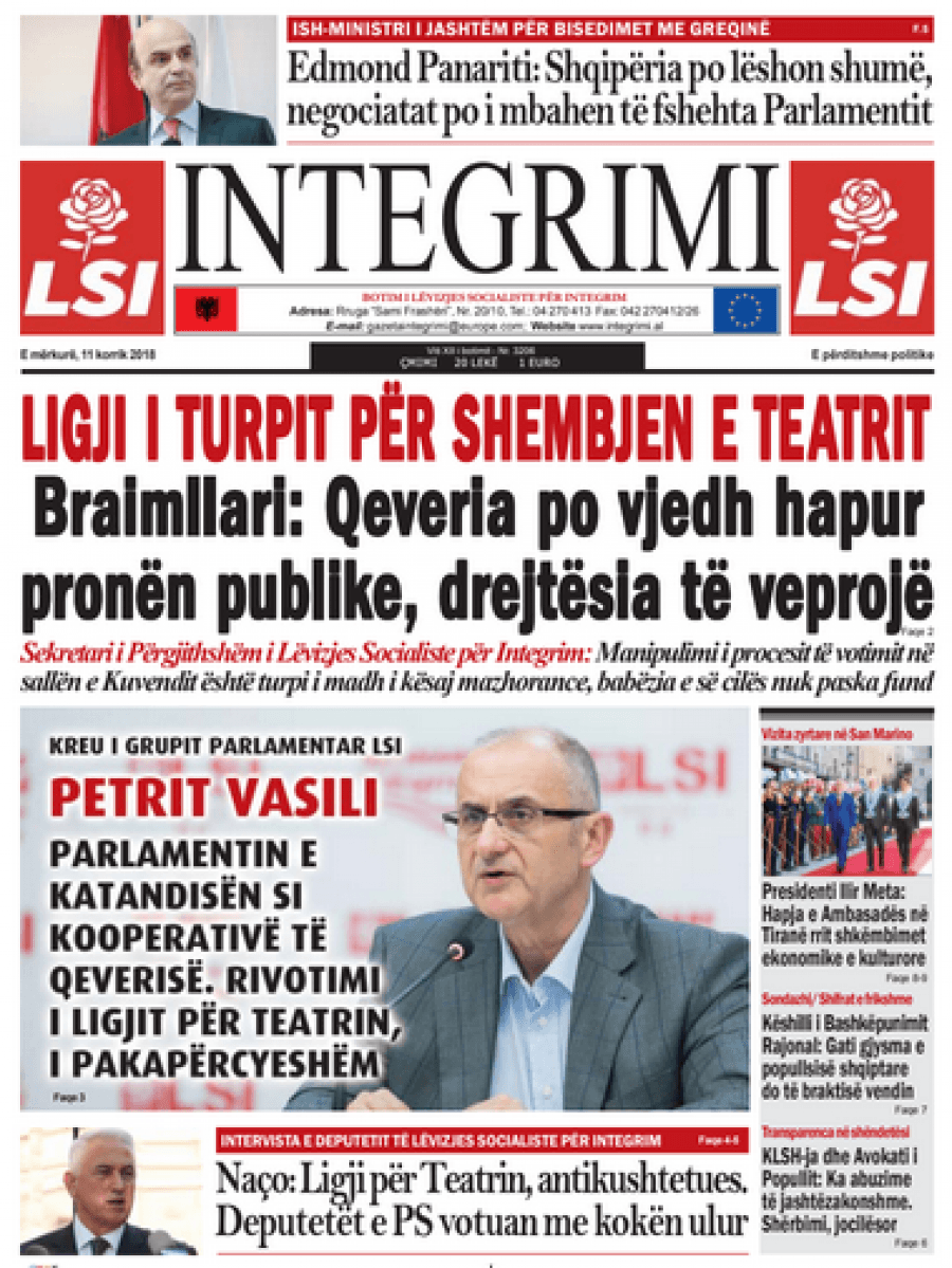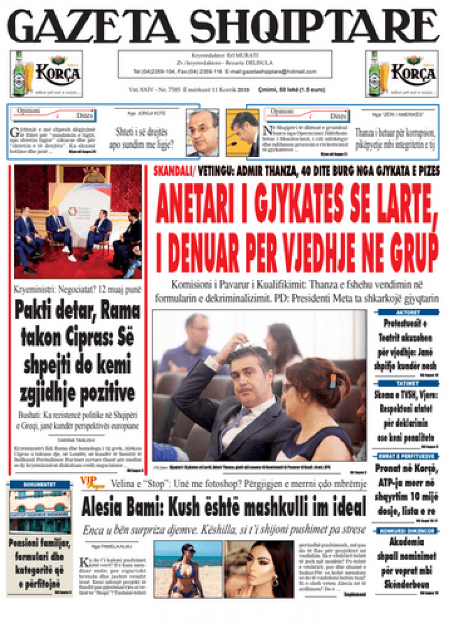 FOTO/ Faqet e para të shtypit të ditës, 11 korrik 2018… KryesoretRisi By Pa frike Last updated Kor 11, 2018 53 Këto janë titujt kryesorë të gazetave të datës 11 Korrik 2018. faqet e paragazetatshtypi i dites 53 Ndaj FacebookTwitterLinkedinGoogle+
