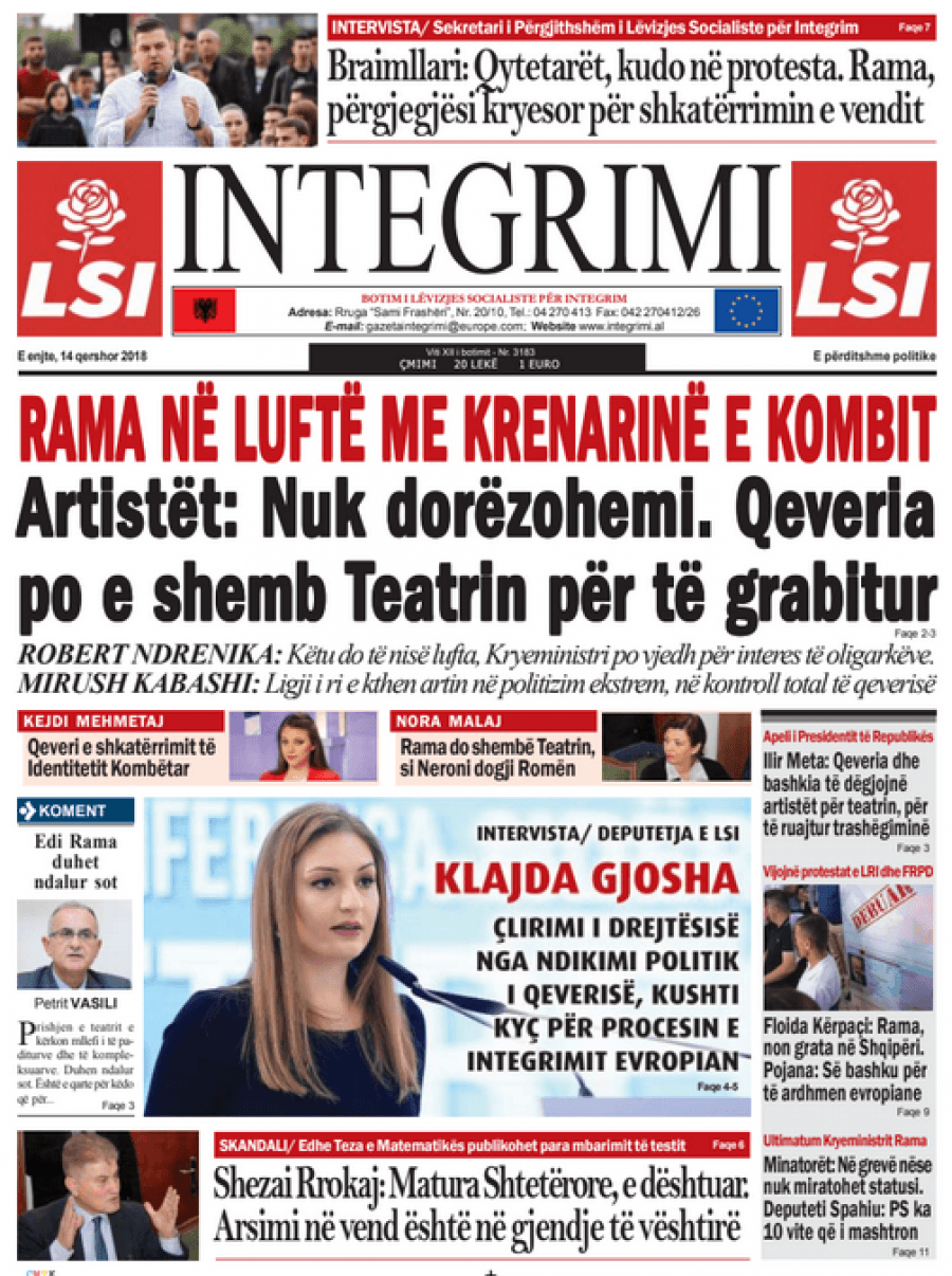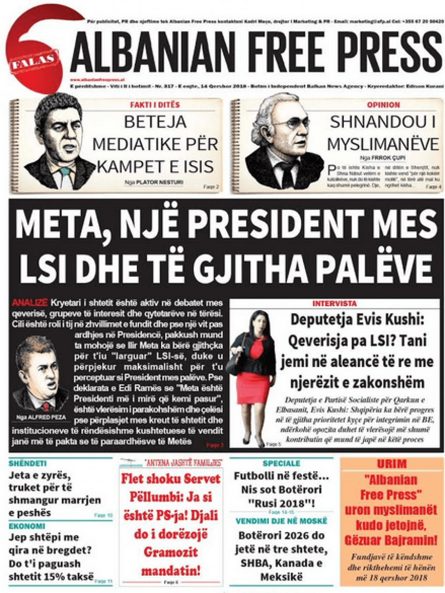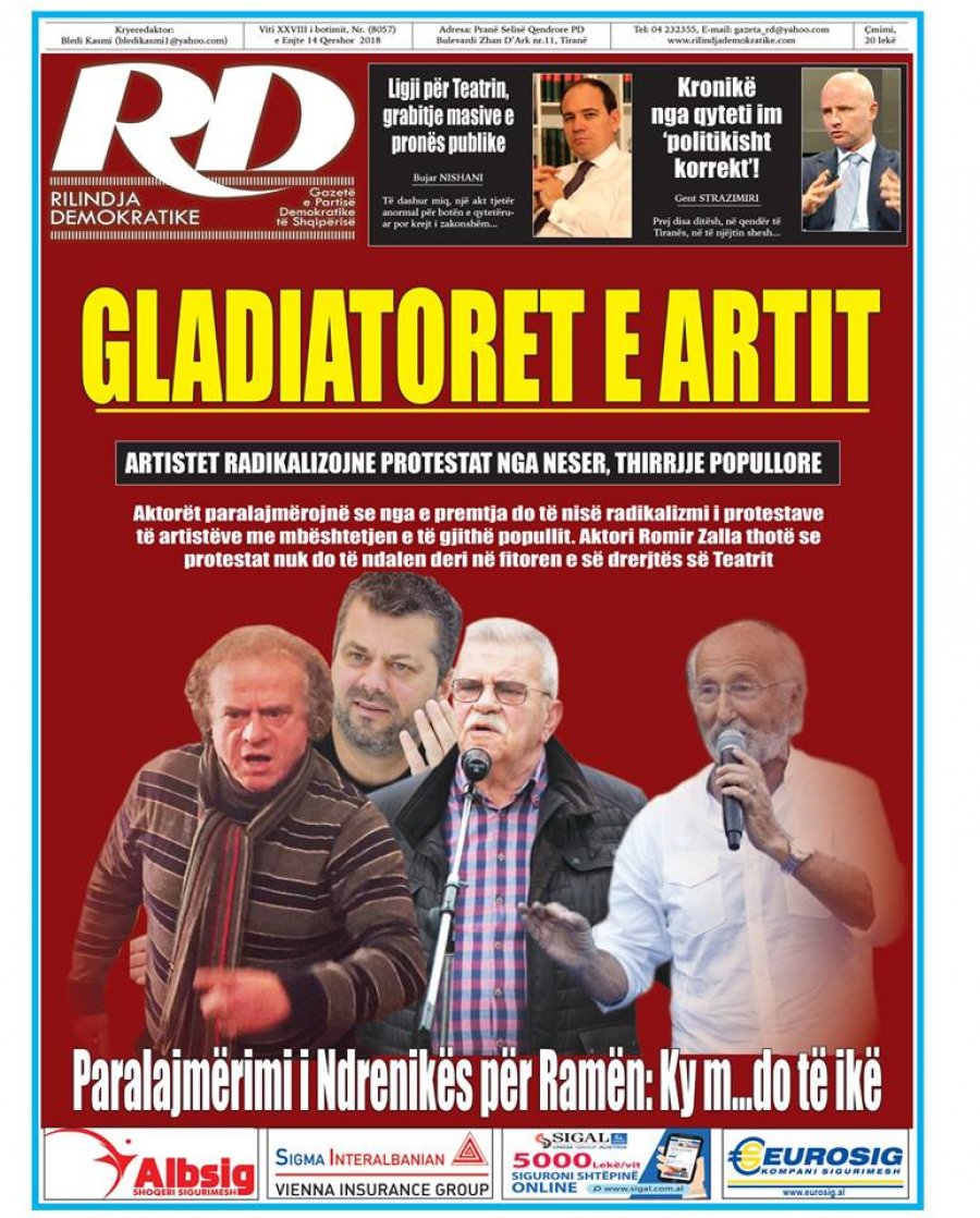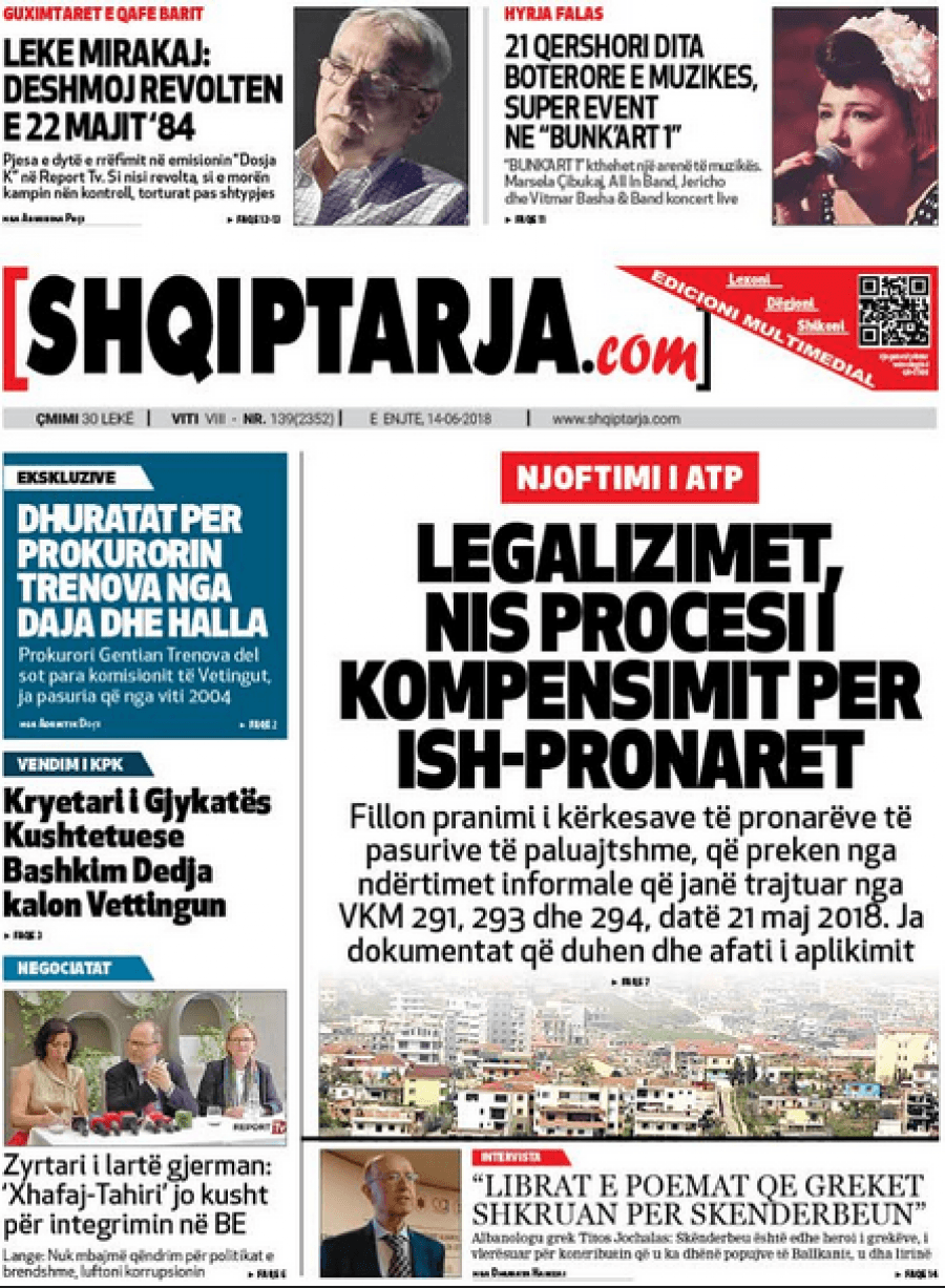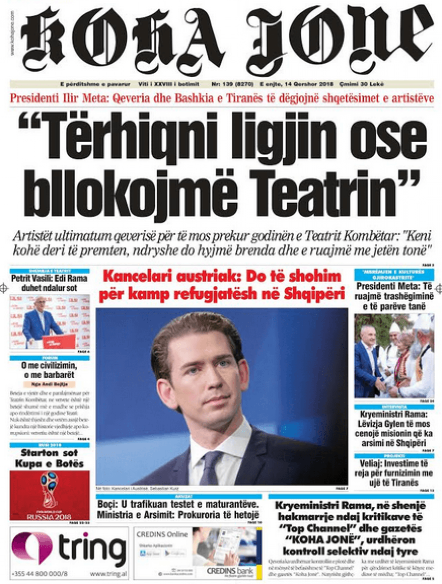 FOTO/ Faqet e para të shtypit të ditës, 14 Qershor 2018… KryesoretRisi By Pa frike Last updated Qer 13, 2018 84 Këto janë titujt kryesorë të gazetave të datës 14 Qershor 2018. faqet e paragazetatshtypi i dites 84 Ndaj FacebookTwitterLinkedinGoogle+