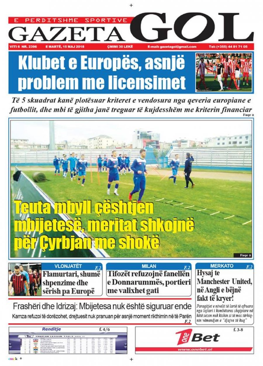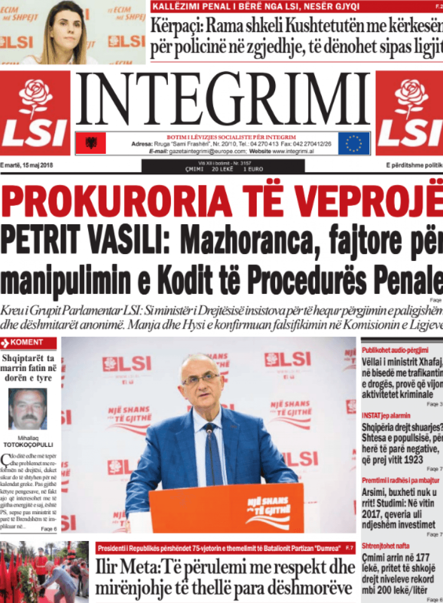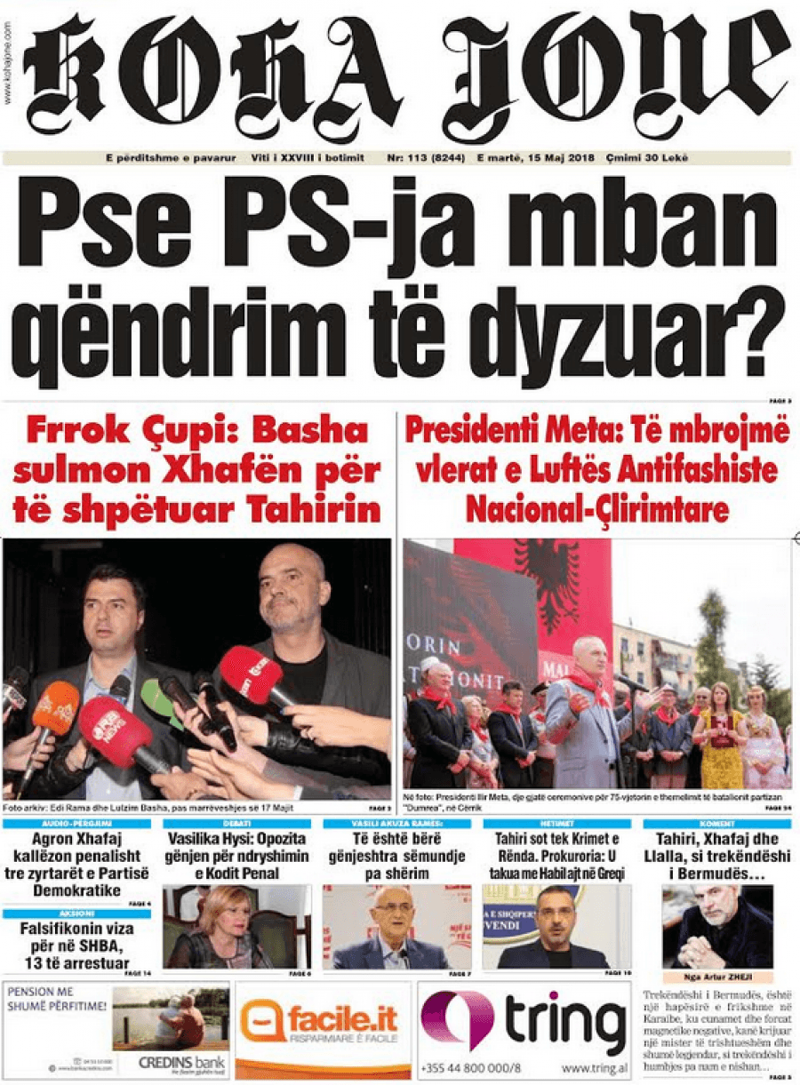 FOTO/ Faqet e para të shtypit të ditës, 15 maj 2018… KryesoretRisi By Pa frike Last updated Maj 15, 2018 63 Këto janë titujt kryesorë të gazetave të datës 15 maj 2018. faqet e para gazetat shtypi i dites 63 Ndaj FacebookTwitterLinkedinGoogle+
