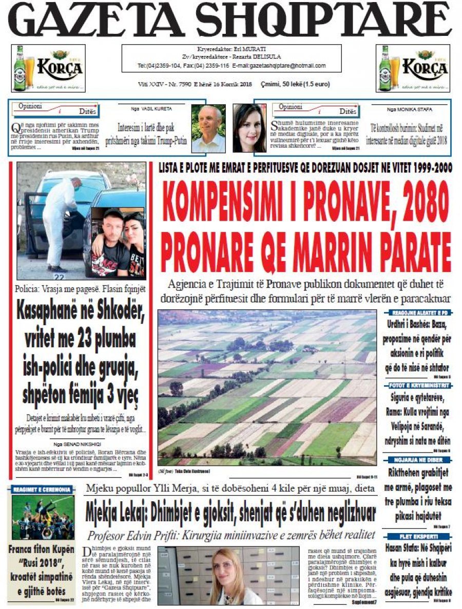 FOTO/ Faqet e para të shtypit të ditës, 16 korrik 2018… KryesoretRisi By Pa frike Last updated Kor 16, 2018 76 Këto janë titujt kryesorë të gazetave të datës 16 Korrik 2018. faqet e paragazetatshtypi i dites 76 Ndaj FacebookTwitterLinkedinGoogle+