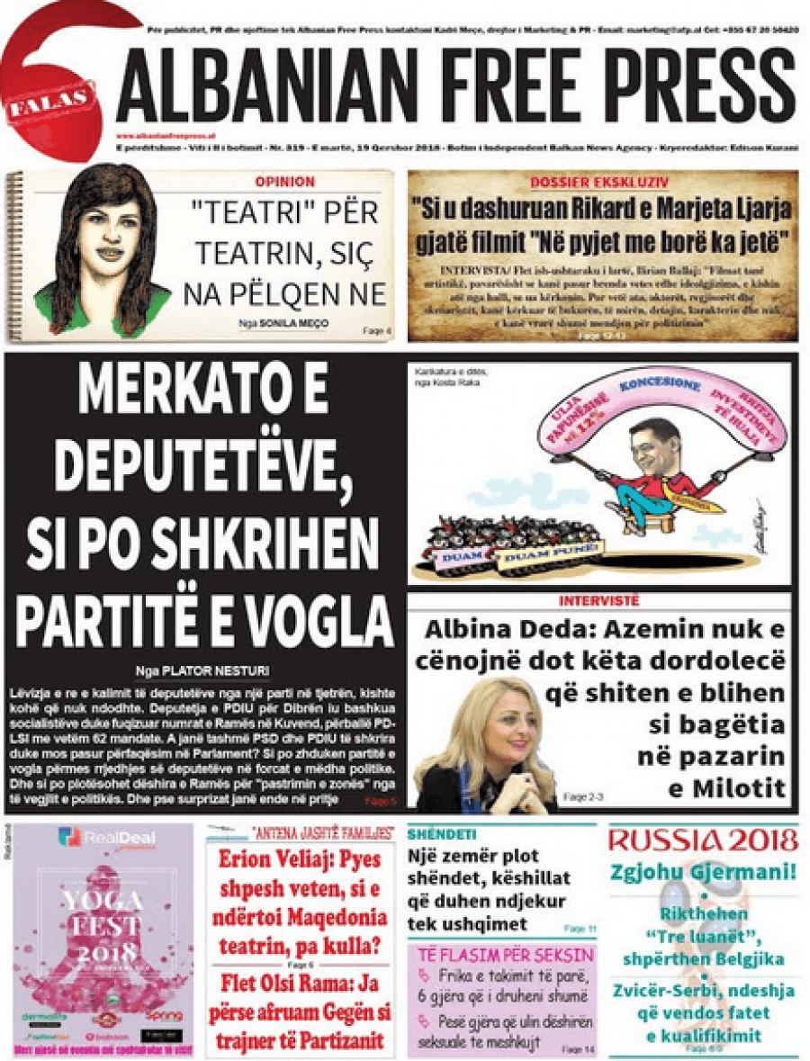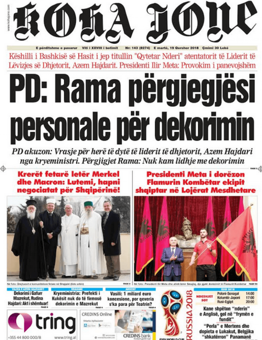 FOTO/ Faqet e para të shtypit të ditës, 19 Qershor 2018… KryesoretRisi By Pa frike Last updated Qer 19, 2018 77 Këto janë titujt kryesorë të gazetave të datës 19 Qershor 2018. faqet e paragazetatshtypi i dites 77 Ndaj FacebookTwitterLinkedinGoogle+