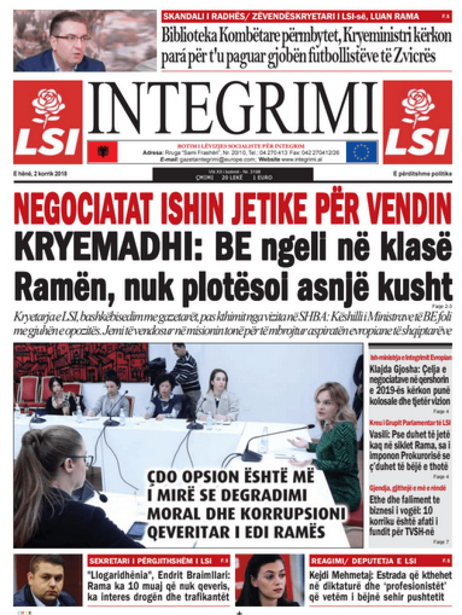 FOTO/ Faqet e para të shtypit të ditës, 2 Korrik 2018… KryesoretRisi By Pa frike Last updated Kor 2, 2018 113 Këto janë titujt kryesorë të gazetave të datës 2 Korrik 2018. faqet e paragazetatshtypi i dites 113 Ndaj FacebookTwitterLinkedinGoogle+