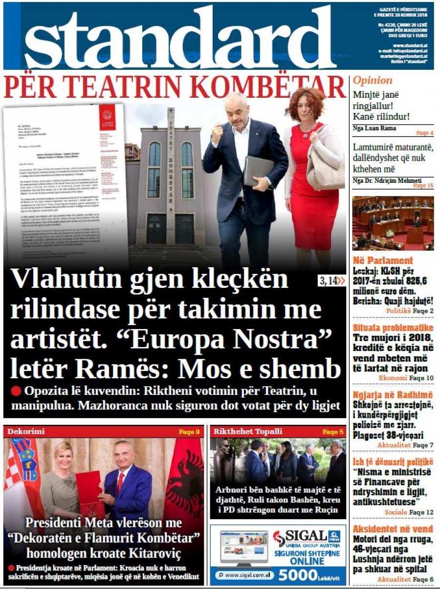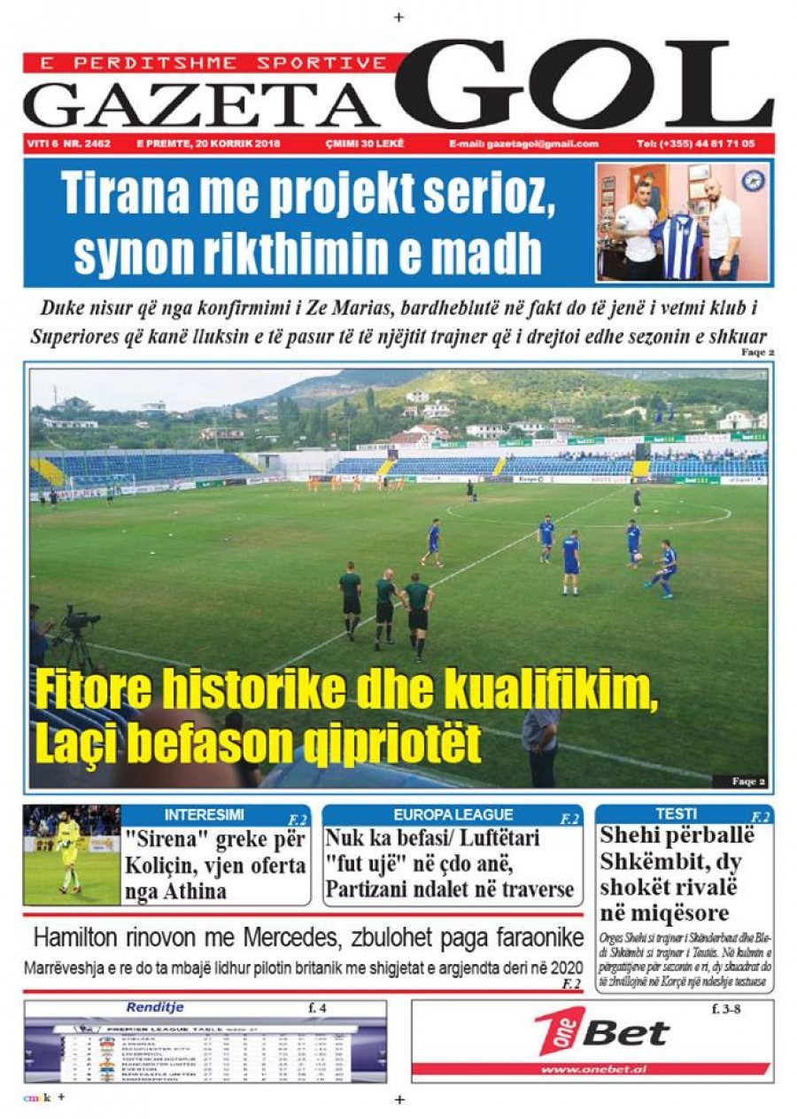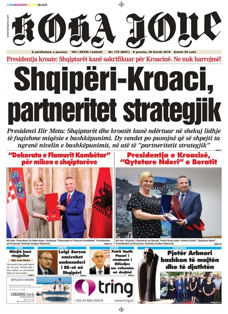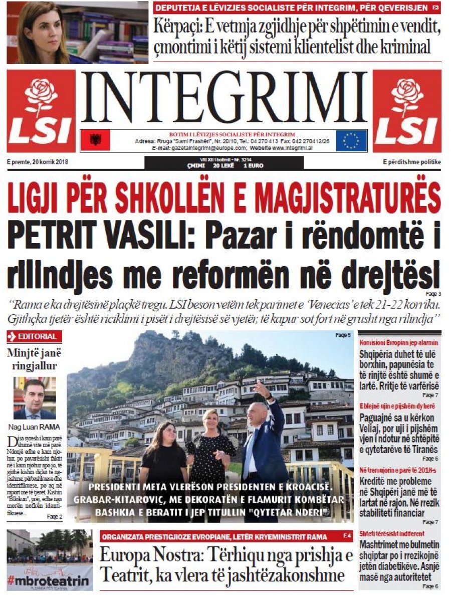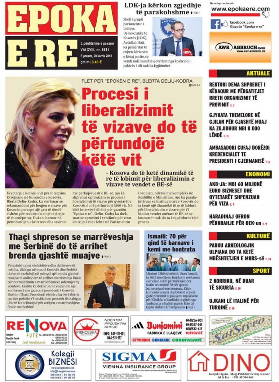 FOTO/ Faqet e para të shtypit të ditës, 20 korrik 2018… KryesoretRisi By Pa frike Last updated Kor 20, 2018 99 Këto janë titujt kryesorë të gazetave të datës 20 Korrik 2018. faqet e paragazetatshtypi i dites 99 Ndaj FacebookTwitterLinkedinGoogle+