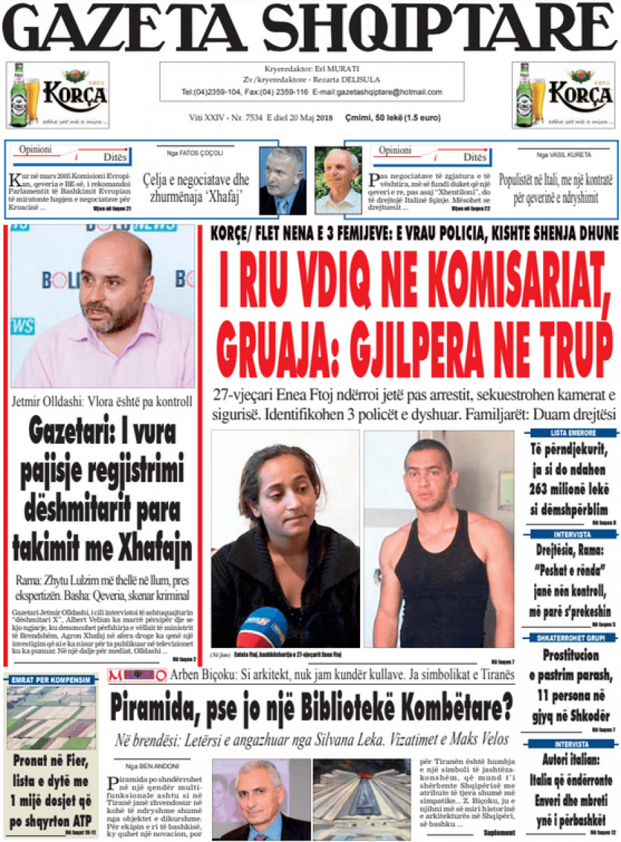 FOTO/ Faqet e para të shtypit të ditës, 20 maj 2018… RisiKryesoret By Pa frike Last updated Maj 20, 2018 97 Këto janë titujt kryesorë të gazetave të datës 20 maj 2018. faqet e paragazetatshtypi i dites 97 Ndaj FacebookTwitterLinkedinGoogle+