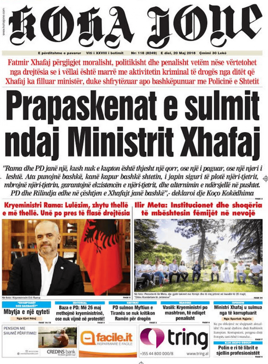 FOTO/ Faqet e para të shtypit të ditës, 20 maj 2018… RisiKryesoret By Pa frike Last updated Maj 20, 2018 93 Këto janë titujt kryesorë të gazetave të datës 20 maj 2018. faqet e paragazetatshtypi i dites 93 Ndaj FacebookTwitterLinkedinGoogle+